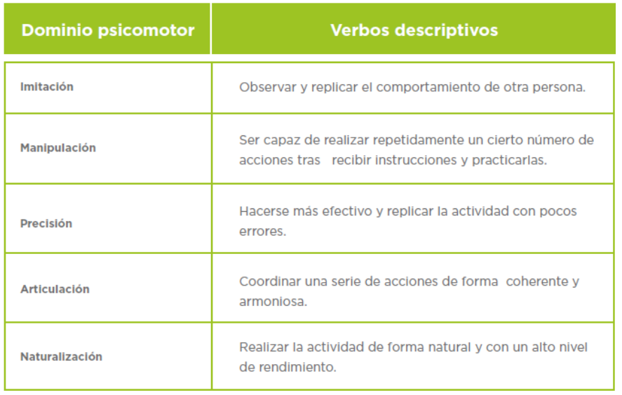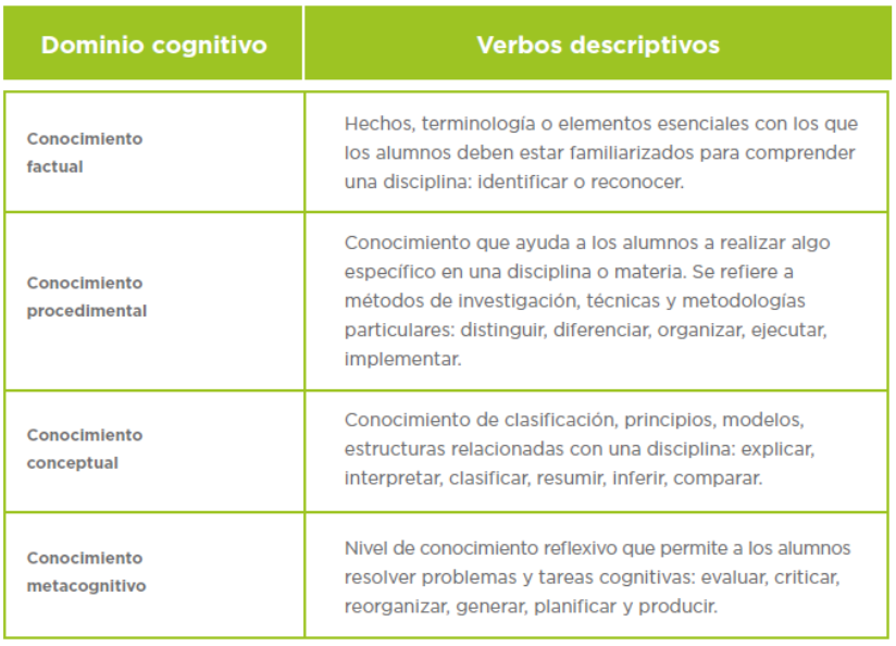 1. Asociación de verbos descriptivos con dominios de aprendizaje